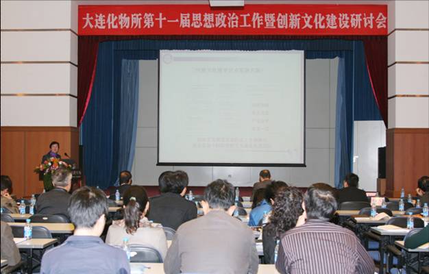 11月24日下午,大連化物所籠罩那個召開第十一屆思想政治工作暨創(chuàng)新文化建設研討會。所長張濤,黨委書記包翠艷,黨委副書記馮埃生,在所的黨委委員,紀委委員,研究室主任,管理及支撐部門負責人,研究室、管理及支撐部門黨支部書記、委員,公司黨支部書記和全體論文作者參加了會議。大會由馮埃生副書記主持。