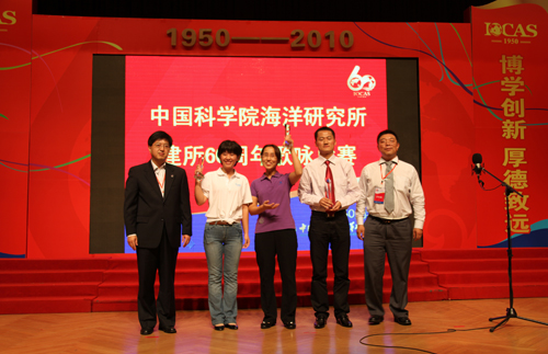 演出結(jié)束,所領(lǐng)導(dǎo)為獲獎(jiǎng)參賽隊(duì)頒發(fā)了獎(jiǎng)杯。全所13支演唱隊(duì)伍為這次高水平的合唱演出進(jìn)行了精心的準(zhǔn)備,在此,向每位演出者,向六十年來(lái)為海洋所奉獻(xiàn)著自己的職工致以深深的敬意,也祝愿我們海洋所的明天更加燦爛美好!