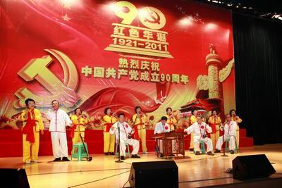 為紀(jì)念建黨90周年,按照大連化物所黨委統(tǒng)一部署,今年各離退休黨支部組織支部黨員群眾大唱紅色經(jīng)典歌曲,抒發(fā)熱愛(ài)黨,熱愛(ài)社會(huì)主義祖國(guó),熱愛(ài)改革開(kāi)放的深厚情意,展現(xiàn)老同志的時(shí)代風(fēng)貌。紅歌會(huì)上,老同志們精心準(zhǔn)備了演唱曲目,按區(qū)域分別戴著紅、白、黃的帽子,在鋼琴的伴奏下,齊聲高唱。繼二站片的《毛委員和我們?cè)谝黄稹分螅仙狡睦贤狙莩恕秷F(tuán)結(jié)就是力量》,一二九片老同志更是每人手持一面五星紅旗,在鏗鏘有力的大鼓伴奏下高唱《解放區(qū)的天》。紅歌會(huì)在老同志的大合唱中拉開(kāi)序幕,隨后,女聲合唱《大紅棗兒甜又香》、《祖國(guó)慈祥的母親》、舞蹈《繡紅旗》、紅歌聯(lián)唱《十送紅軍》《二月里來(lái)》《紅梅贊》《贊歌》《長(zhǎng)江之歌》、民樂(lè)小合奏《映山紅、唱支山歌給黨聽(tīng)》、大合唱《江山》《把一切獻(xiàn)給黨》等曲目不斷把活動(dòng)推向高潮。最后全場(chǎng)高唱《沒(méi)有共產(chǎn)黨就沒(méi)有新中國(guó)》,在雄壯的歌聲中,紅歌演唱會(huì)落下帷幕。