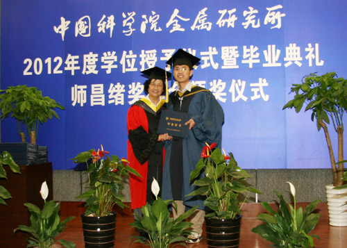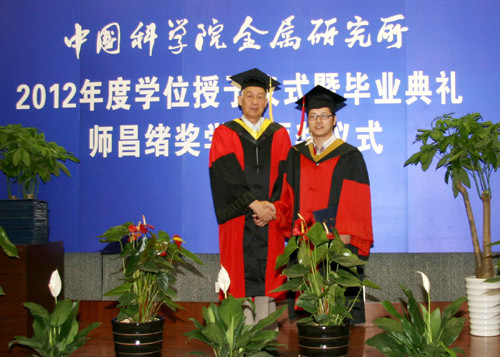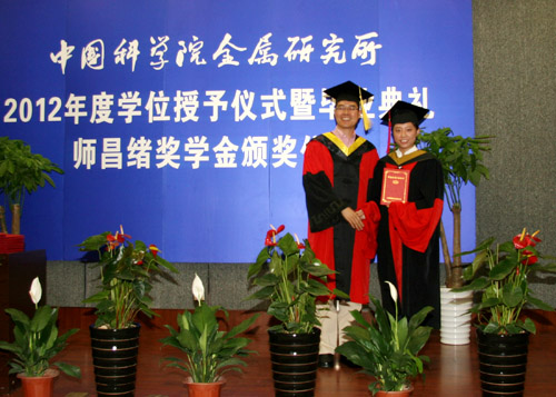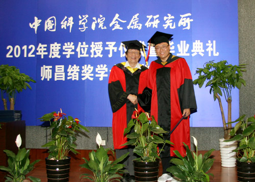 6月8日上午,金屬所2012年度畢業(yè)典禮暨學(xué)位授予、師昌緒獎學(xué)金頒獎儀式在所學(xué)術(shù)報告廳隆重舉行。金屬所學(xué)位評定委員會委員、導(dǎo)師代表、2012年度畢業(yè)生及親友近400人出席了典禮。