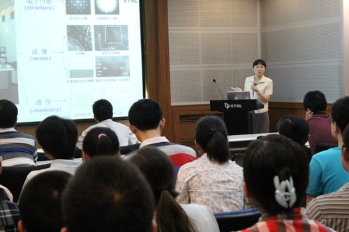 本次活動(dòng)邀請(qǐng)了沈陽材料科學(xué)國家(聯(lián)合)實(shí)驗(yàn)室工程合金研究部朱銀蓮研究員作了題為“材料結(jié)構(gòu)與缺陷分析中的透射電子顯微術(shù)”的報(bào)告。朱銀蓮研究員的研究方向?yàn)楣δ苎趸锉∧ぁT诖舜螆?bào)告中,她以功能氧化物薄膜為例,詳細(xì)介紹了透射電子顯微術(shù)在材料結(jié)構(gòu)與缺陷分析中的具體應(yīng)用。由于在薄膜的制備及分析中,界面的性質(zhì)及作用是非常重要的,因此,朱銀蓮研究員重點(diǎn)介紹了如何綜合運(yùn)用電子衍射、高分辨成像及成分分析等對(duì)薄膜界面進(jìn)行分析。最后,朱銀蓮研究員還簡單介紹了透射電子顯微技術(shù)在材料科學(xué)研究領(lǐng)域應(yīng)用的最新進(jìn)展情況。