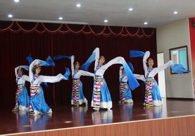 在向老軍人贈(zèng)送慰問品之后,該所職工和研究生為革命老功臣演出了精心排練的文藝節(jié)目。舞蹈《卓瑪》、《青花瓷》,配樂詩朗誦《洗禮》,笛子獨(dú)奏《揚(yáng)鞭催馬運(yùn)糧忙》、《駿馬奔馳保邊疆》,歌曲《父親的草原母親的河》、《山丹丹開花紅艷艷》、《志愿軍軍歌》等節(jié)目,把演出推向一個(gè)又一個(gè)高潮。