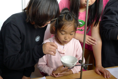 博士實(shí)踐團(tuán)志愿者指導(dǎo)同學(xué)們做實(shí)驗(yàn)