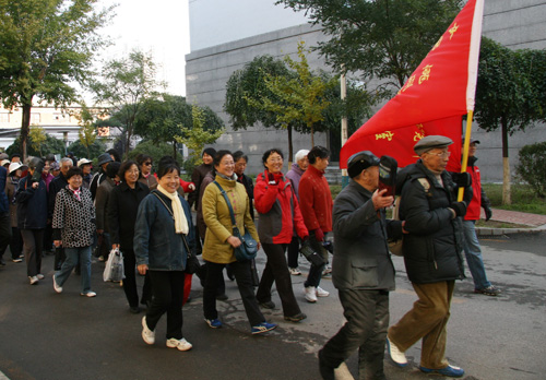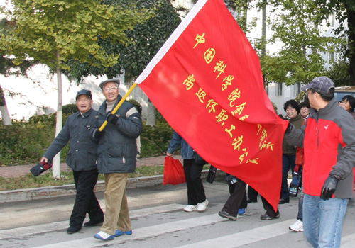 在浩浩蕩蕩的行走隊(duì)伍中,無(wú)論青絲還是銀發(fā),無(wú)論矯健還是蹣跚,每個(gè)人都興高采烈,精神抖擻地展示著金屬所離退休職工晚年的幸福和安康。