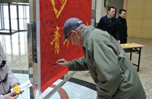青年志愿者協(xié)會在成立之日,并沒有選擇召開隆重的慶祝大會,而是通過志愿者宣傳活動來慶祝自己組織的誕生。上午11時許,志愿者將提前做好的“雷鋒精神,永放光芒”宣傳展板布置在宿舍樓一樓大廳,并發(fā)起“學(xué)習(xí)雷鋒點(diǎn)滴做起,快樂志愿心系公益”的志愿者簽名活動。得到了廣大職工和研究生的熱烈響應(yīng)和積極參與,紛紛上前簽名,并和志愿者交流。一些退休老同志和餐廳工作員工也加入到活動中。最后,志愿者向大家分發(fā)協(xié)會成立紀(jì)念書簽和印有中國志愿者標(biāo)志的會徽以示紀(jì)念。