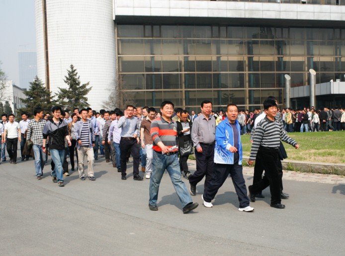 參加徒步走活動(dòng)職工浩浩蕩蕩從所區(qū)大樓前出發(fā)