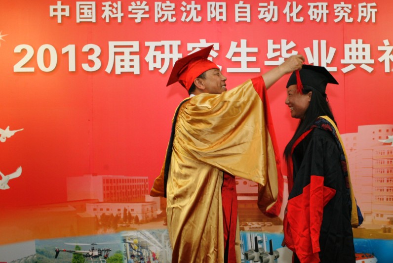 畢業(yè)典禮由桑子剛主持。桑子剛首先向圓滿完成學業(yè)并獲得博士和碩士學位的同學們表示熱烈的祝賀,并向多年來悉心指導和培養(yǎng)研究生的各位導師、研究生教育工作者表示衷心感謝。隨后,他宣讀了沈陽自動化所學位委員會關(guān)于春季授予14名畢業(yè)生學位和夏季擬授予55名畢業(yè)生學位的決定。在激動人心的樂曲聲中,封錫盛為每一位畢業(yè)生撥正學位帽上的流蘇,頒發(fā)畢業(yè)證書并一一合影留念。