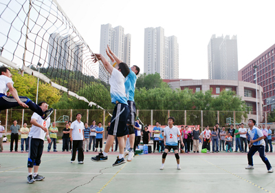 下午四點整,機關(guān)-十九室女隊和十一室女隊首先進行女排冠軍的角逐,機關(guān)-十九室女隊高超的實力、十一室穩(wěn)健的防守都令人印象深刻。隨后,男排決賽在五室男隊和十五室男隊之間進行,兇猛的扣殺、驚險的救球令人目不暇接,觀眾們叫好連連。