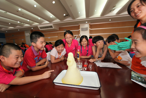 志愿者向營員們介紹了海洋所總體情況,希望同學(xué)們通過參觀學(xué)習(xí)能夠有所啟迪和收獲,快樂學(xué)習(xí),健康成長。營員們聆聽了“走進(jìn)南北極”和“海洋生物的啟示”科普報告,美輪美奐的圖片和精彩視頻讓營員們沉浸其中。營員們參觀了中科院海洋生物標(biāo)本館和科普展廳,到海邊采集了各式各樣的海藻,讓很多第一次見到大海的營員激動不已,大家認(rèn)真的挑選出喜歡的海藻,在志愿者的細(xì)心指導(dǎo)下,親手制成海洋植物標(biāo)本,看著自己的作品滿臉驕傲。最讓營員們興奮的是能夠親自動手進(jìn)行海洋科學(xué)小實驗,志愿者們精心設(shè)計了“海中撈鹽、大象的鼻子和制造可燃冰”3個小實驗,把簡單的海洋知識和科學(xué)現(xiàn)象融入其中,讓營員們親身體驗了海洋科學(xué)研究的樂趣,并從中學(xué)習(xí)科學(xué)知識,提高動手能力,培養(yǎng)科學(xué)思維。