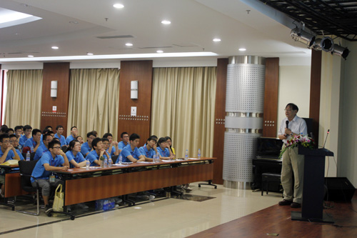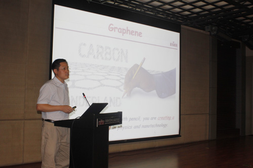 開(kāi)營(yíng)儀式上,年過(guò)八旬的柯偉院士為同學(xué)們作了題為“深閨待嫁鎂合金”的報(bào)告。報(bào)告通俗易懂,生動(dòng)有趣,開(kāi)拓了營(yíng)員的視野,加深了大家對(duì)鎂合金的理解。報(bào)告會(huì)上,徐堅(jiān)研究員作了“科學(xué) 科學(xué)家 材料科學(xué)”的報(bào)告,任文才研究員作了“石墨烯:豐富多彩的二維晶體”的報(bào)告。報(bào)告中沒(méi)有死板的定義、生澀的術(shù)語(yǔ),只有PPT中一幅幅精美的圖片;報(bào)告會(huì)上沒(méi)有嚴(yán)格的師生界線、專(zhuān)家的威嚴(yán),只有報(bào)告人與營(yíng)員之間良好地互動(dòng)和交流。
