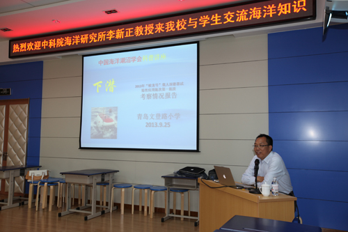 9月25日,中科院海洋所洋生物分類(lèi)學(xué)專(zhuān)家李新正研究員到青島文登路小學(xué)開(kāi)展科普講座,和同學(xué)們分享了搭乘蛟龍?zhí)栞d人深潛器參加“蛟龍海山”區(qū)首次科學(xué)下潛的親身經(jīng)歷。中國(guó)海洋湖沼學(xué)會(huì)、海洋所團(tuán)委負(fù)責(zé)同志參加了活動(dòng)。