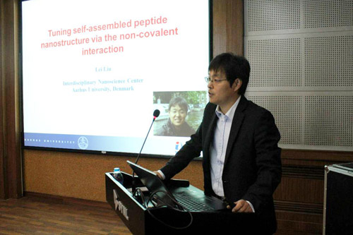 在9月進(jìn)行的兩次功能材料沙龍中,分別邀請到了福州大學(xué)的魏明燈教授及丹麥奧胡斯大學(xué)Interdisciplinary Nanoscience Center (iNANO)的劉磊博士作主題報(bào)告。魏明燈教授作了題為“納米結(jié)構(gòu)鈦酸鹽--能量轉(zhuǎn)化與儲(chǔ)存新電極材料”的報(bào)告;劉磊博士以“Tuning self-assembled peptide nanostructure via the non-covalent interaction”為題與所內(nèi)青年職工進(jìn)行交流,在報(bào)告前,劉博士還向沙龍成員介紹了丹麥奧胡斯大學(xué)及其所在課題組的相關(guān)情況。