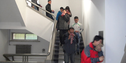 為了使疏散演練達到更好的效果,安保辦進行了充分的準備,為參加演練的每位職工和學生發(fā)放了毛巾,用來模擬捂住口鼻,防止吸入有毒煙氣。在演練過程中,各樓職工和學生都能夠認真地按照事先的安排,安全有秩序地從各安全通道和出口迅速疏散到樓外,取得了較好的效果,達到了演練預期的目的。