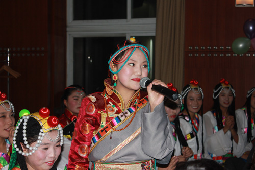 西藏班的小伙伴兒們則帶來了具有濃郁民族特色的歌舞。一曲高亢的《瑪吉阿媽》和藏族原生態(tài)的舞蹈《阿媽的酥油燈》,則展現(xiàn)了藏族同胞能歌善舞的藝術(shù)天賦,讓獨(dú)唱變成了大合唱,臺上臺下互動交融,高潮迭起。晚會的最后,雙方的老師在同學(xué)們熱烈的掌聲中即興表演了歌舞。一臺精彩、火爆的晚會使遠(yuǎn)離親人的藏族小伙伴兒們感受到節(jié)日的喜慶氣氛,也讓金屬所的師生們從藏族學(xué)生純真、友愛的表現(xiàn)中得到了心靈的凈化。