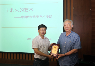 隨后,來自清華大學美術(shù)學院的楊永善教授為大家做了題為“中國傳統(tǒng)陶瓷藝術(shù)漫談”主題報告。報告開始前,王華代表該所向楊永善頒發(fā)了文化講壇貢獻獎獎牌。
