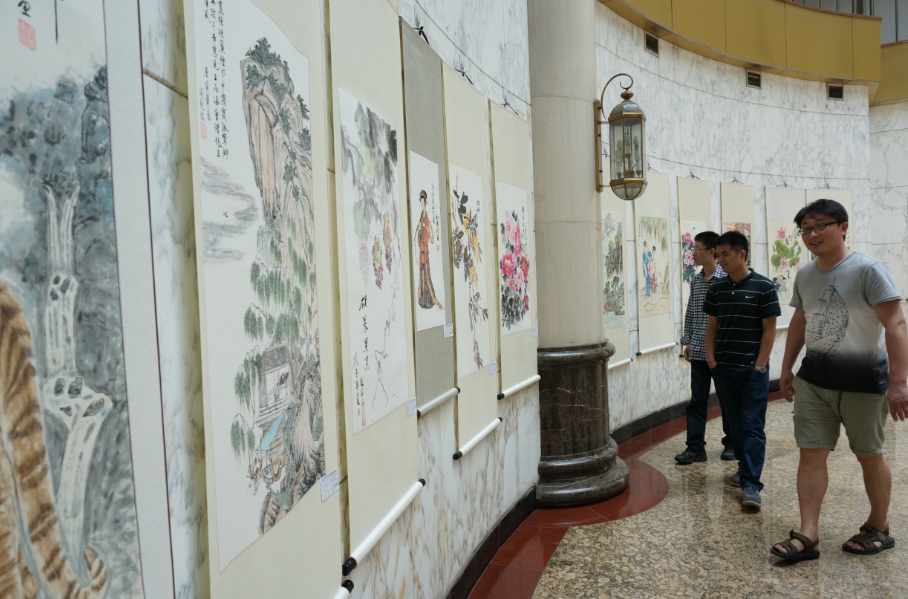所內(nèi)人員欣賞展出的繪畫(huà)作品