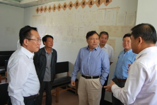 王啟堯一行分別聽取了荒地村書記林玉華的情況介紹和朝陽(yáng)鎮(zhèn)黨委書記楊貴學(xué)的工作匯報(bào),楊貴學(xué)在匯報(bào)中說,幾年來,朝陽(yáng)鎮(zhèn)在各級(jí)黨委、政府的領(lǐng)導(dǎo)下,特別是在中科院沈陽(yáng)分院的關(guān)懷、幫助、支持下,經(jīng)濟(jì)社會(huì)協(xié)調(diào)發(fā)展,各項(xiàng)事業(yè)取得長(zhǎng)足發(fā)展,成果喜人,獲得了“全國(guó)億萬農(nóng)民健身運(yùn)動(dòng)”先進(jìn)單位,市、縣級(jí)文明單位等榮譽(yù)。王啟堯詳細(xì)了解了荒地村的自然情況和發(fā)展困點(diǎn)難點(diǎn),查看了正在修建的一座漫水橋和擬建的村公路、土路段,看望并慰問一直在村開展扶貧工作的三名隊(duì)員。