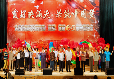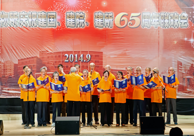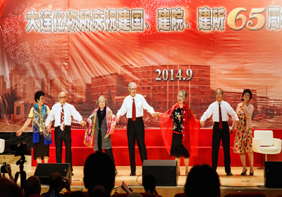 整個聯(lián)歡會過程中,觀眾們沉浸在一片興奮與激動的海洋中,歡樂祥和的氣氛一浪高過一浪,送給臺上演員的掌聲一陣高過一陣——由《所志》編寫組創(chuàng)作,所咨詢委12位委員深情演繹的配樂詩朗誦《獻給建所65周年》,完整地回顧了大連化物所走過的65年的光輝歷程,由衷地傾訴了老一輩化物所人對研究所的熱愛與忠誠;由平均年齡75歲的石油大學(xué)校友會20位老同學(xué)們合唱的《我為祖國獻石油》,款款地唱出了老同學(xué)們當(dāng)年為祖國科研事業(yè)貢獻青春力量的無悔與豪邁;由平均年齡82歲的3對老夫妻手牽手獻上的歌伴走臺秀《最浪漫的事》,掀起了觀眾們塵封的青春記憶,觸動了在場每一位化物所人柔軟的心靈;在《異地老同志問候視頻》中,觀眾們看到了久違的當(dāng)年一起奮斗的老同事那熟悉又親切的面龐,聽到了他們發(fā)自內(nèi)心的對祖國、院里和所里的真心祝福和對所里人的真誠問候。整臺晚會近200名演員,通過女聲組合《今天是你的生日,中國》、男聲四重唱《父親的草原母親的河》、舞蹈《紅旗頌》、《小蘋果》、《吉祥謠》、朗誦《中國夢、我的夢》、器樂合奏《我和我的祖國》、《好日子》、合唱《龍的傳人》、《共和國之戀》等節(jié)目為慶祝65周年齊聲喝彩,大家用各自不同的方式表達對祖國、對中科院、對化物所的熱愛和祝福。