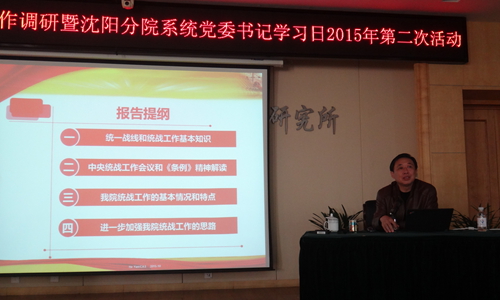在會議上,中國科學院黨組成員、副秘書長、院黨建工作領導小組副組長何巖作了題為“開闊胸懷 凝心聚力 活用法寶-扎實做好新形勢下的統(tǒng)戰(zhàn)工作”的輔導報告。他從統(tǒng)一戰(zhàn)線和統(tǒng)戰(zhàn)工作基本知識、中央統(tǒng)戰(zhàn)工作會議和《條例》精神解讀、我院統(tǒng)戰(zhàn)工作的基本情況和特點、以及進一步加強我院統(tǒng)戰(zhàn)工作的思路四個方面,全面系統(tǒng)闡述了當前形勢下統(tǒng)戰(zhàn)工作的意義、思路和方法,最后對各單位黨委書記開展好統(tǒng)戰(zhàn)工作提出了工作要求。王啟堯強調各單位黨委理論中心組要加強《條例》的研究和學習,針對本單位的實際情況,對照何巖副秘書長的報告要求尋找差距,并根據工作部署抓好落實。