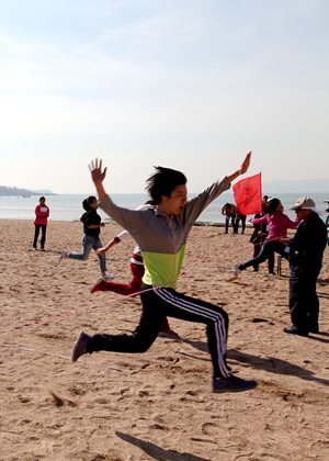 隨著比賽開始,沙灘上熱鬧非凡,選手精神抖擻奮力拼搏,觀眾熱情加油吶喊助威。60米托球跑要求速度與技巧相結(jié)合,二人三足更加注重團(tuán)隊(duì)的默契程度,鉛球、立定跳遠(yuǎn)、跳繩等傳統(tǒng)項(xiàng)目競(jìng)爭(zhēng)激烈。最吸引人的還是團(tuán)體項(xiàng)目60米接力比賽,在助威吶喊聲中,運(yùn)動(dòng)員們你追我趕,十分激烈,將本屆沙灘運(yùn)動(dòng)會(huì)的氛圍推向高潮。