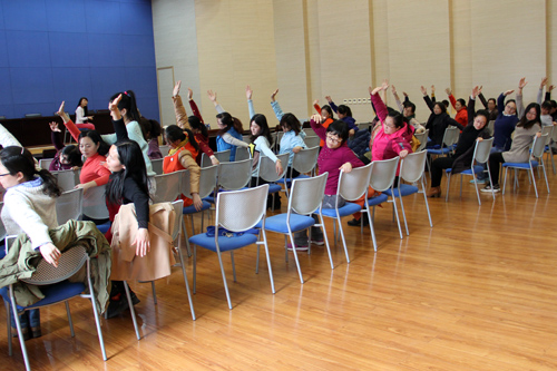 活動中,在瑜伽教練的帶領下,大家借助一張椅子、一條伸展帶,從調整呼吸、放松肩頸開始,逐步學習了一些消除頸椎、肩、背疲勞的辦公室瑜伽動作,鍛煉了身體,放松了心情,度過了一個“健康”的節(jié)日。