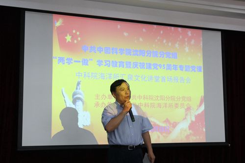 6月28日,為深入推進“兩學一做”學習教育,慶祝建黨95周年,由中共沈陽分院分黨組主辦、海洋研究所承辦的“兩學一做”專題黨課在青島順利舉辦,邀請著名黨建專家、中紀委駐中科院紀檢組原組長王庭大同志為分院全體黨員作專題黨課報告。海洋所所長、黨委委員孫松,黨委副書記、副所長兼紀委書記楊紅生,副所長、黨委委員王輝,黨委委員張盾,全體紀委委員,黨支部書記以及黨員代表共240余人參加會議。沈陽分院分黨組書記王啟堯主持會議。