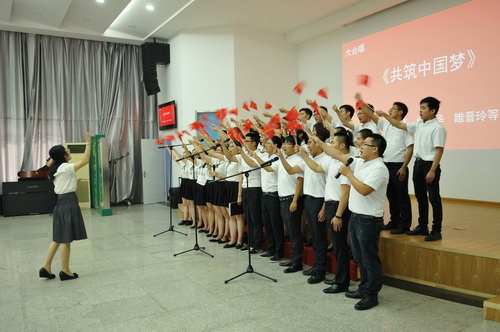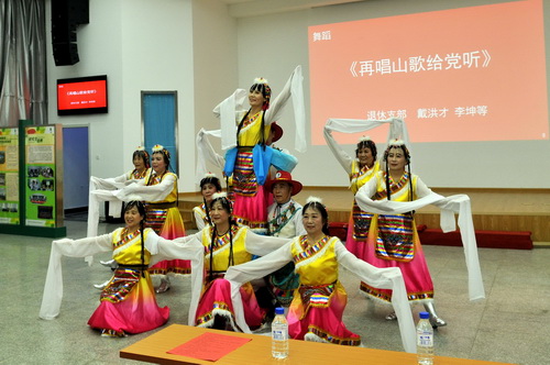 在農(nóng)業(yè)支部的朱雪峰獨(dú)唱《天耀中華》之后,環(huán)境支部和信息編輯開發(fā)支部合唱了《中國,中國,鮮紅的太陽永不落》和《歌唱祖國》。離退休支部的老黨員穿起藏族的傳統(tǒng)服裝,甩起長袖,帶來了舞蹈《再唱山歌給黨聽》。 最后,研究生總支表演了大合唱《共筑中國夢》,給整場文藝匯演畫上了完美的句號。
