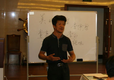本期講座,張旭泉主要為大家呈現(xiàn)的是唐代詩人的代表人物——“詩仙”李白的生平和詩歌作品。張旭泉告訴大家,李白的詩歌總體風(fēng)格清新俊逸,既反映了時代的繁榮景象,也揭露了統(tǒng)治階級的荒淫和腐敗,表現(xiàn)出蔑視權(quán)貴、反抗傳統(tǒng)束縛、追求自由和理想的積極精神。在他的詩歌作品中,以樂府、歌行和絕句的成就為最高。張旭泉帶領(lǐng)大家一起品讀了《將進酒》、《長相思》、《襄陽歌》、《早發(fā)白帝城》、《登廬山五老峰》等諸多膾炙人口的佳作,并介紹了每一首詩歌的寫作背景和深層含義。大家在輕松的氛圍中體會著“詩仙”的意境,由此也更加深了對我國傳統(tǒng)文化的熱愛。