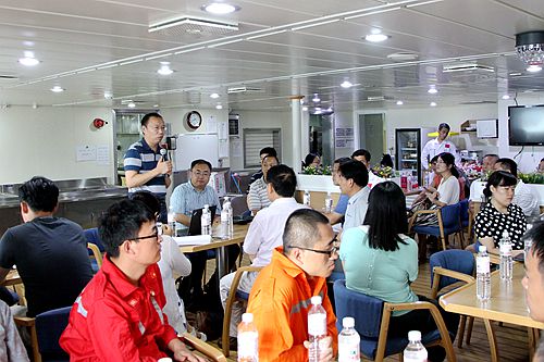 活動(dòng)結(jié)束后,黨員們結(jié)合各自從事的專業(yè)工作參觀了“科學(xué)”號(hào)考察船的船載實(shí)驗(yàn)室。