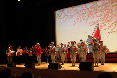 演出在中科院幼兒園小朋友的舞蹈《中國(guó)范兒》中拉開了帷幕,孩子們載歌載舞、歡聲笑語(yǔ),表達(dá)了對(duì)祖國(guó)的熱愛之情;離退休老同志的表演唱《十送紅軍》、由紅軍子女演唱的《紅軍戰(zhàn)士想念毛澤東》,唱出了老區(qū)人民對(duì)紅軍的深情厚誼,更唱出了紅軍戰(zhàn)士堅(jiān)定不移的革命信念;分別由在職職工和研究生及所老年大學(xué)舞蹈班表演的舞蹈《萬(wàn)泉河水清又清》和《情深意長(zhǎng)》,展現(xiàn)了長(zhǎng)征途中軍民情深的感人畫面;小合唱《過雪山草地》謳歌了紅軍戰(zhàn)士頑強(qiáng)的鋼鐵意志;大合唱《到吳起鎮(zhèn)》和民樂合奏《山丹丹開花紅艷艷》,生動(dòng)地描繪了紅軍戰(zhàn)士經(jīng)過千辛萬(wàn)苦到達(dá)陜北的歷史時(shí)刻;在職職工歌唱協(xié)會(huì)的二重唱《你鼓舞我》,感激紅軍精神對(duì)我們?nèi)松缆返闹敢焕收b《一位可敬可愛的父親——毛澤東》講述了毛澤東悄悄收藏兒子遺物二十余年的一段故事,深厚的父子情讓人動(dòng)容;女聲小合唱《五星紅旗》和獨(dú)唱《我愛你中國(guó)》,洋溢著對(duì)祖國(guó)的無(wú)限熱愛……嘹亮的歌聲、深情的朗誦、優(yōu)美的舞姿、熱情的演奏,參加演出的百余名演員們真摯的感情和飽滿的精神,引起全場(chǎng)觀眾的共鳴,贏得了經(jīng)久不息的掌聲。