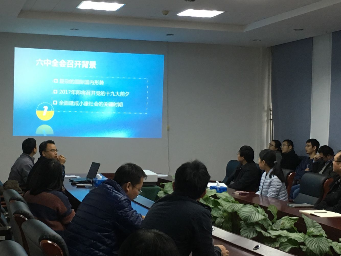 周功克書(shū)記帶領(lǐng)大家一起學(xué)習(xí)了《六中全會(huì)為全面從嚴(yán)治黨開(kāi)創(chuàng)新局面》的報(bào)告,對(duì)十八屆六中全會(huì)的意義、內(nèi)容、展望等方面進(jìn)行了詳細(xì)生動(dòng)的解讀,周書(shū)記號(hào)召大家要堅(jiān)定理想信念,始終相信、依靠人民群眾,為實(shí)現(xiàn)中華民族偉大復(fù)興做貢獻(xiàn)。之后,全體黨員觀看了首都師范大學(xué)馬克思主義教育學(xué)院原院長(zhǎng)李松林同志做的關(guān)于“兩學(xué)一做”,強(qiáng)化學(xué)習(xí)意識(shí),爭(zhēng)做合格黨員的視頻報(bào)告。