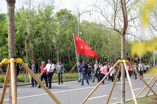 晴朗的天空,清新的空氣,春天的嫩綠,令大家歡欣不已。健身走隊員在金屬所旗幟的引領(lǐng)下,精神抖擻,矯健前行,一路上歡聲笑語不斷,燦爛笑容四射。浩浩蕩蕩的隊伍如一條長龍,蜿蜒環(huán)繞在美麗的沈水河畔。在金戈鐵馬的秦開塑像前和北門轉(zhuǎn)盤處,大家自發(fā)聚集在金屬所旗幟下合影留念。