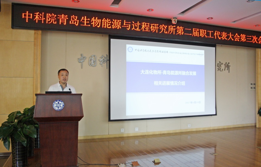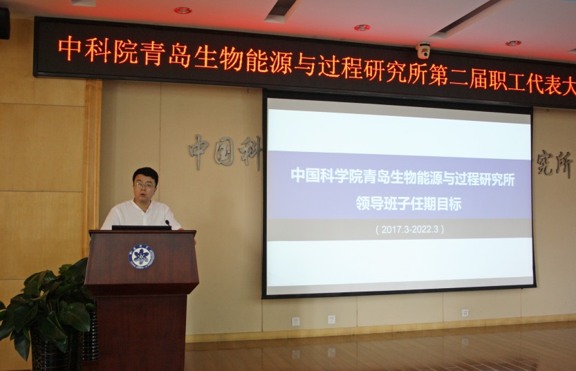 6月19日,青島能源所組織召開了第二屆職工代表大會第三次全體會議,會議審議通過了黨委書記彭輝代表所領(lǐng)導(dǎo)班子作的《中國科學(xué)院青島生物能源與過程研究所領(lǐng)導(dǎo)班子任期目標(2017.3-2022.3)》。彭輝在報告中指出,要貫徹落實院黨組的重大決策部署,以兩所融合發(fā)展共建創(chuàng)新研究院為抓手,進一步優(yōu)化科技布局,全面完成 “一三五”規(guī)劃目標,全面提升研究所的科技創(chuàng)新實力、服務(wù)經(jīng)濟社會發(fā)展的能力和國際影響力,實現(xiàn)研究所的創(chuàng)新跨越發(fā)展,力爭在若干重點領(lǐng)域,將研究所建成世界一流的研究機構(gòu)。