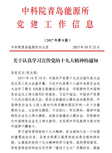 研究所各級(jí)黨組織通過(guò)多種學(xué)習(xí)宣傳形式,營(yíng)造了濃厚的學(xué)習(xí)氛圍,掀起了學(xué)習(xí)熱潮。下一步,青島能源所-大連化物所黨委將在青島組織召開(kāi)十九大報(bào)告精神專題黨委中心組理論學(xué)習(xí)會(huì)議,將思想統(tǒng)一到黨中央提出的新思想新理念上來(lái),以工作實(shí)際成效踐行“四個(gè)意識(shí)”,為推動(dòng)兩所融合發(fā)展各項(xiàng)事業(yè)積極貢獻(xiàn)力量。(文/圖 高立楊)