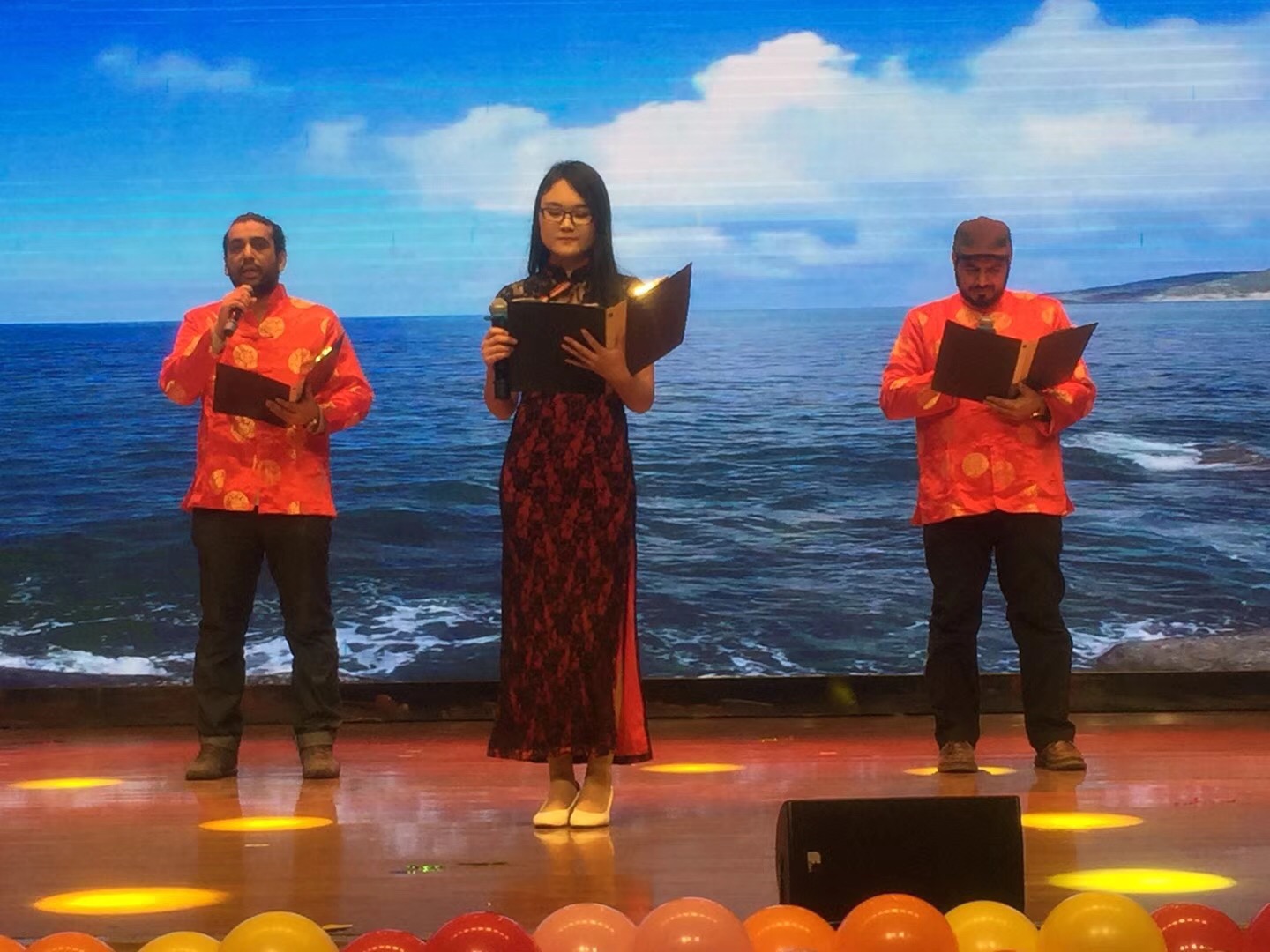 由大連化物所帶來(lái)的新疆舞《我愛(ài)的人兒在新疆》拉開(kāi)了聯(lián)歡會(huì)的序幕。整臺(tái)聯(lián)歡會(huì)由17個(gè)文藝節(jié)目組成,集舞蹈、歌曲、相聲、小品、詩(shī)朗誦、歌舞劇等于一體,形式多樣。獨(dú)唱《天邊的駱駝》深情悠揚(yáng),二重唱《You raise me up》激昂高亢,《原鄉(xiāng)人》、《月亮代表我的心》甜美醉人,樂(lè)隊(duì)歌曲串燒嗨翻全場(chǎng),小朋友們的歌舞表演活潑可愛(ài);歌舞劇《多彩辦公室》,舞蹈《時(shí)代在召喚》、《Panama》展現(xiàn)出研究所職工和學(xué)生朝氣蓬勃、積極向上的精神風(fēng)貌;相聲《科研女博士》、視頻歌曲《生科的意義》、《三句半》、小品《租個(gè)女友回家過(guò)年》、歌舞劇《年代秀》以詼諧幽默的方式講述了科研工作者對(duì)工作、生活和人生經(jīng)歷的感悟以及對(duì)美好前程的展望;由八段錦愛(ài)好者帶來(lái)《八段錦表演》、留學(xué)生代表帶來(lái)的詩(shī)朗誦《面朝大海春暖花開(kāi)》氣勢(shì)磅礴,贏得了臺(tái)下觀眾的陣陣掌聲,將祥和的節(jié)日氣氛推向高潮。最后,晚會(huì)在以“愛(ài)”為主題的歌曲串燒中落下帷幕,通過(guò)現(xiàn)場(chǎng)觀眾投票產(chǎn)生了觀眾最喜歡的優(yōu)秀節(jié)目,并在晚會(huì)進(jìn)行了現(xiàn)場(chǎng)表彰。整臺(tái)聯(lián)歡會(huì)內(nèi)容豐富,形式新穎,氣氛熱烈,精彩紛呈。大家在歡聲笑語(yǔ)中辭舊迎新,揚(yáng)帆起航,續(xù)寫新的篇章。(文/王琳 圖/研究所)