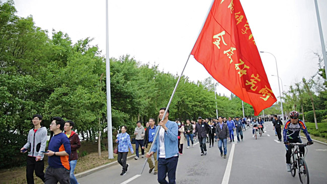 在金屬所旗幟的引領(lǐng)下,在熱烈而溫馨的氣氛中,浩浩蕩蕩的隊(duì)伍宛如一條長(zhǎng)龍,蜿蜒盤(pán)繞在美麗的沈水河畔。在金戈鐵馬的秦開(kāi)塑像前和北門(mén)轉(zhuǎn)盤(pán)處,大家自發(fā)聚集在金屬所旗幟下合影留念。五公里的健步走活動(dòng),大家有說(shuō)有笑,談一談工作,聊一聊生活,在歡樂(lè)的氣氛里增強(qiáng)了交流、增進(jìn)了感情。