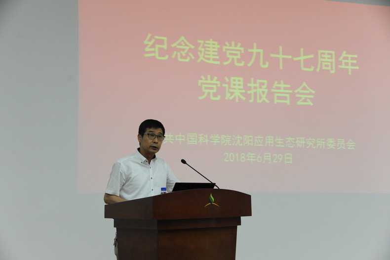 為紀(jì)念中國(guó)共產(chǎn)黨成立97周年,深入學(xué)習(xí)領(lǐng)會(huì)習(xí)近平關(guān)于科技創(chuàng)新的重要思想,2018年6月29日下午中國(guó)科學(xué)院沈陽(yáng)應(yīng)用生態(tài)研究所黨委在多功能廳舉辦黨課報(bào)告會(huì),邀請(qǐng)遼寧大學(xué)馬克思主義學(xué)院教研室主任、十九大精神遼寧省宣講團(tuán)成員陳發(fā)水作“新時(shí)代、新?lián)?dāng)、新作為”黨課報(bào)告。研究所在職黨員、離退休黨和學(xué)生黨員員130余人參加報(bào)告會(huì)。報(bào)告會(huì)由沈陽(yáng)生態(tài)所黨委書記金昌杰主持。