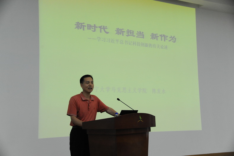 報(bào)告中,陳發(fā)水首先分析了習(xí)近平科技創(chuàng)新思想形成的歷史背景,他認(rèn)為習(xí)近平科技創(chuàng)新思想是基于世界歷史與近代中國(guó)屈辱歷史深刻反思的結(jié)果,是捍衛(wèi)國(guó)家主權(quán)的客觀需要,是綜合國(guó)力的重要顯示度的表現(xiàn),也是實(shí)現(xiàn)“兩個(gè)一百年”奮斗目標(biāo)的客觀要求。隨后他闡述了習(xí)近平科技創(chuàng)新思想的主要內(nèi)容,包含創(chuàng)新是引領(lǐng)發(fā)展的第一動(dòng)力;實(shí)施創(chuàng)新驅(qū)動(dòng)發(fā)展戰(zhàn)略,推進(jìn)以科技創(chuàng)新為核心的全面創(chuàng)新;.科技創(chuàng)新是提高社會(huì)生產(chǎn)力和綜合國(guó)力的戰(zhàn)略支撐;堅(jiān)定不移走中國(guó)特色自主創(chuàng)新道路;加快科技體制改革步伐;牢牢把握科技進(jìn)步大方向;牢牢把握產(chǎn)業(yè)革命大趨勢(shì);牢牢把握集聚人才大舉措等八個(gè)方面。報(bào)告最后,陳老師講述了新近印發(fā)的《關(guān)于進(jìn)一步激勵(lì)廣大干部新時(shí)代新?lián)?dāng)新作為的意見(jiàn)》的主要內(nèi)容,包括大力教育引導(dǎo)干部擔(dān)當(dāng)作為、干事創(chuàng)業(yè),鮮明樹立重實(shí)干重實(shí)績(jī)的用人導(dǎo)向,充分發(fā)揮干部考核評(píng)價(jià)的激勵(lì)鞭策作用,切實(shí)為敢于擔(dān)當(dāng)?shù)母刹繐窝膭?,著力增?qiáng)干部適應(yīng)新時(shí)代發(fā)展要求的本領(lǐng)能力,滿懷熱情關(guān)心關(guān)愛(ài)干部,凝聚形成創(chuàng)新創(chuàng)業(yè)的強(qiáng)大合力等建立激勵(lì)機(jī)制和容錯(cuò)糾錯(cuò)機(jī)制的七個(gè)舉措。陳老師的報(bào)告主題鮮明,緊跟大局、邏輯清晰、論證深入,具有很強(qiáng)的理論性、政策性和針對(duì)性,對(duì)我們深入學(xué)習(xí)領(lǐng)會(huì)習(xí)近平科技創(chuàng)新思想,對(duì)貫徹落實(shí)《關(guān)于進(jìn)一步激勵(lì)廣大干部新時(shí)代新?lián)?dāng)新作為的意見(jiàn)》有積極意義。