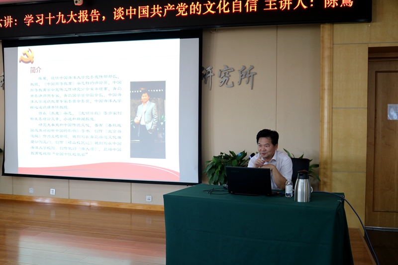 9月26日下午,中國海洋大學黨委宣傳部部長陳鷟教授應邀再次作客中國科學院青島生物能源與過程研究所“清源聚能”文化論壇,做了題為“學習十九大報告,談中國共產黨的文化自信”的精彩報告。研究所全體黨員、入黨積極分子共200余人到場聆聽了報告。 陳鷟深入闡釋了十九大報告中文化自信的豐富內涵,從中國共產黨的文化根基、中國歷史和傳統(tǒng)文化等方面分析了“堅定文化自信 弘揚傳統(tǒng)文化”的現(xiàn)實意義和重要性。