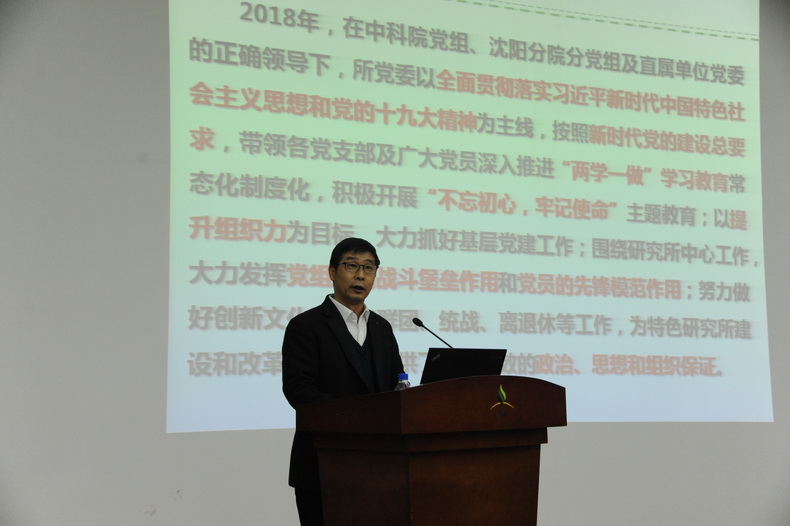 黨委書記金昌杰代表所黨委做工作報(bào)告。他指出,2018年在中科院黨組、沈陽分院分黨組及直屬單位黨委的正確領(lǐng)導(dǎo)下,所黨委以全面貫徹落實(shí)習(xí)近平新時(shí)代中國特色社會主義思想和黨的十九大精神為主線,按照新時(shí)代黨的建設(shè)總要求,帶領(lǐng)各黨支部及廣大黨員深入推進(jìn)“兩學(xué)一做”學(xué)習(xí)教育常態(tài)化制度化,積極開展“不忘初心,牢記使命”主題教育;以提升組織力為目標(biāo),大力抓好基層黨建工作;圍繞研究所中心工作,大力發(fā)揮黨組織的戰(zhàn)斗堡壘作用和黨員的先鋒模范作用;為特色研究所建設(shè)和改革創(chuàng)新發(fā)展提供了切實(shí)有效的政治、思想和組織保證。