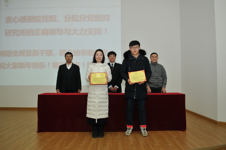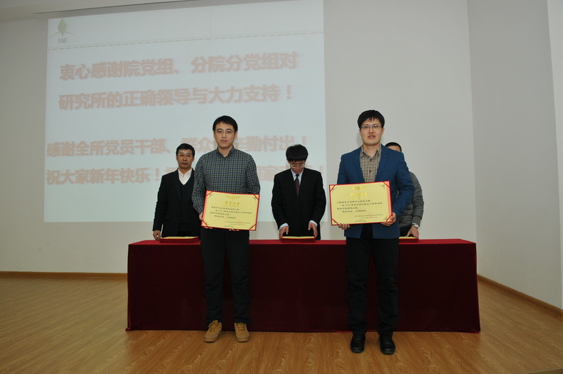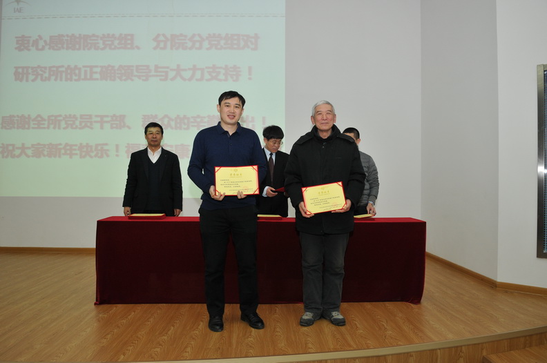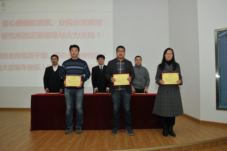 隨后,所黨委舉行“兩先兩優(yōu)”表彰儀式。班子成員向2018年度先進(jìn)黨支部、先進(jìn)黨小組、優(yōu)秀黨務(wù)工作者、優(yōu)秀黨員、優(yōu)秀團(tuán)干部和優(yōu)秀團(tuán)員頒發(fā)了獎狀和榮譽(yù)證書。所黨委希望受表彰的先進(jìn)集體和優(yōu)秀個人要珍惜榮譽(yù),再接再厲,在各自崗位上繼續(xù)發(fā)揮先鋒模范作用,努力在今后的工作中做出更加優(yōu)異的成績。所黨委號召全所各級黨組織和廣大黨員要認(rèn)真向他們學(xué)習(xí),牢記黨的宗旨,履行黨員義務(wù),開拓進(jìn)取,扎實(shí)工作,以更加飽滿的激情,更加務(wù)實(shí)的作風(fēng),在研究所改革、創(chuàng)新、發(fā)展中作一流貢獻(xiàn),創(chuàng)一流成績。