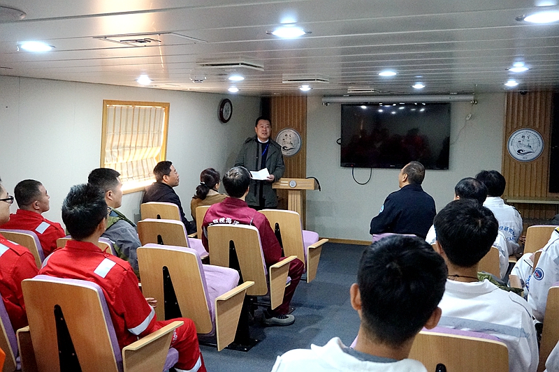畢偉副書記表示,成立“海上堡壘”臨時(shí)黨支部體現(xiàn)了所黨委對(duì)海洋科學(xué)考察工作的高度重視,希望臨時(shí)黨支部切實(shí)帶領(lǐng)航次全體黨員充分發(fā)揮戰(zhàn)斗堡壘作用,落實(shí)黨組織的各項(xiàng)建設(shè)工作,保障航次任務(wù)的順利完成。黨群工作處處長(zhǎng)展翔天表示,運(yùn)管中心黨支部一直是研究所黨建工作的特色和亮點(diǎn),希望臨時(shí)黨支部繼續(xù)發(fā)揮海洋科考優(yōu)良傳統(tǒng),建設(shè)成為堅(jiān)不可摧的“海上堡壘”。臨時(shí)黨支部書記李雷溪表示,黨支部一定不負(fù)黨委重托,切實(shí)履行支部職責(zé),保障航次任務(wù)的順利完成。