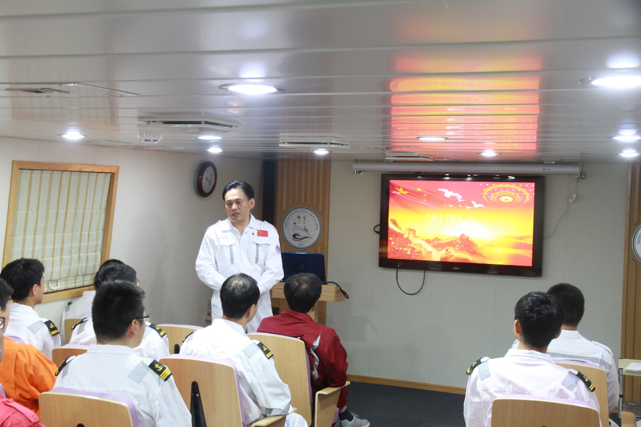 4月9日,正在西太平洋執(zhí)行科考任務(wù)的“科學(xué)”號“海上堡壘”臨時黨支部開展“加強理論提升 做合格黨員”主題黨日活動,重溫黨的理論知識,并共同觀看紀(jì)念毛漢禮先生百年誕辰記錄片。黨支部14名黨員及3名入黨積極分子參加活動,黨委委員、臨時黨支部書記李雷溪同志主持活動。