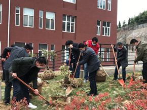 各黨支部將植樹活動與本月主題黨日有機結合,黨員們熱情高漲,搬運樹苗、揮鍬挖坑、填土栽種,大家分工協(xié)作、配合默契,經過四個下午的努力,百余株桂花、核桃等樹苗在園區(qū)辦公樓前形成了一道道靚麗的風景線。