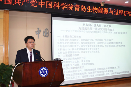 5月28日上午,中國共產(chǎn)黨中國科學(xué)院青島生物能源與過程研究所第三次黨員大會隆重開幕,中科院沈陽分院分黨組書記姬蘭柱、組織人事處處長曲文生出席了大會。大會由第二屆黨委副書記、紀(jì)委書記馮埃生同志主持,共288名黨員參加了會議。