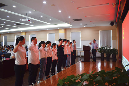 隨后,在黨委委員張瑞東的帶領(lǐng)下,10名新入黨的預(yù)備黨員面向黨旗進(jìn)行了莊嚴(yán)的入黨宣誓儀式。