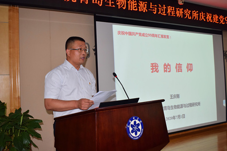 生物基材料研究室黨支部書記王慶剛作為獲表彰人員代表,以“我的信仰”為題做了匯報發(fā)言,通過講述自己工作十年來的5個小故事,表達(dá)了對黨、對國家、對研究所和科研事業(yè)的熱愛。