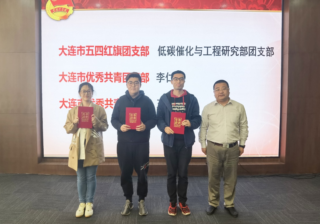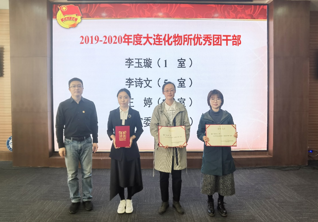 團(tuán)委書記熊川男首先宣讀了“遼寧省青年五四獎?wù)拢w)”、大連市青年五四獎?wù)碌墨@獎名單和中科院、大連市、所內(nèi)“兩優(yōu)一先”的表彰名單。毛志遠(yuǎn)、辦公室主任李振濤、黨委辦公室主任王書詔與熊川男分別為獲獎集體與個人頒發(fā)榮譽證書。