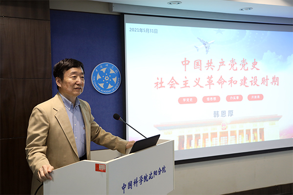 學習會上,韓恩厚作社會主義革命和建設時期黨史學習專題報告,通過歷史時間軸系統(tǒng)梳理了新中國成立、鞏固政權(quán)、過渡時期、社會主義探索、文革時期、真理大討論六個重要歷史時期,同時從歷史的角度分析了中國共產(chǎn)黨執(zhí)政帶來的啟示。韓恩厚在報告中強調(diào)了黨對科技事業(yè)領(lǐng)導的重視,結(jié)合社會主義革命和建設時期的黨史闡釋了科技事業(yè)在這一階段的發(fā)展。