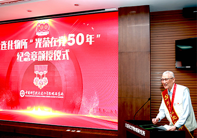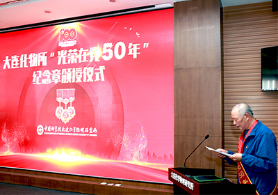 6月18日,中國科學(xué)院大連化學(xué)物理研究所隆重舉行“光榮在黨50年”紀(jì)念章頒授儀式。大連化物所院士何國鐘,老領(lǐng)導(dǎo)陳慶道、李文釗等50余名矢志不渝、飽經(jīng)風(fēng)霜的老黨員代表出席儀式,獲頒金燦燦的紀(jì)念章。所黨委書記金玉奇作總結(jié)講話,所黨委副書記、紀(jì)委書記毛志遠(yuǎn)主持儀式。